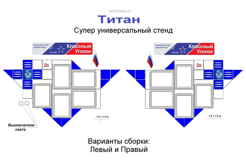 Супер стенд-конструктор «Титан» может эксплуатироваться более 10 лет, не теряя внешнего вида и конструкционного функционала. Учитель может выпустить несколько поколений учеников, классы в дальнейшем могут быть разные, поэтому в комплекте цифры и литеры класса разные. Покупатель может выбрать дополнительно, бесплатно, предметную панорамную наклейку по профилю классного руководителя, его кабинета.