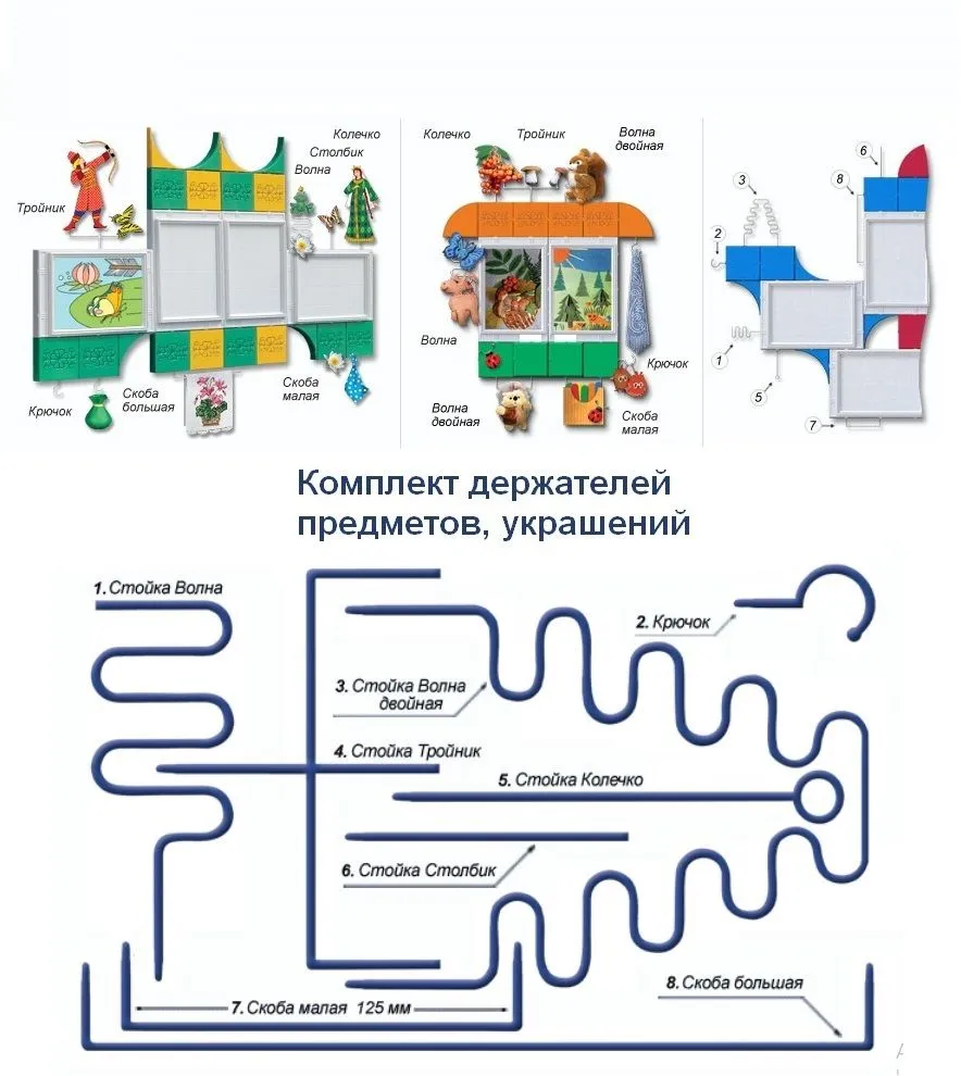 Комплект держателей предметов и украшений (10 элементов) трансформирует супер стенд в выставочную площадку; 20 точек крепления по контуру стенда.