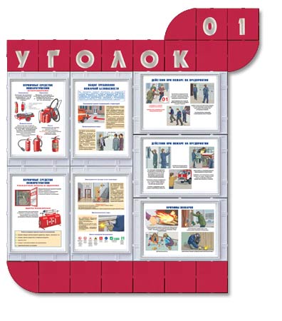 Цена стенда указана без стоимости плакатов. Комплект плакатов А4 "Умей действовать при пожаре", 12 шт., 840 руб.